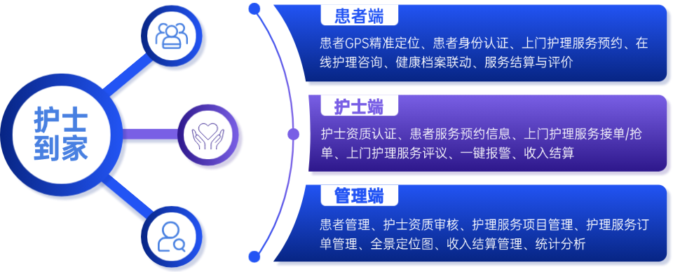 在院后的居家社区服务领域,护士到家平台精准响应"互联网+护理服务"政策要求,实现护理需求在线下单、护士资质审核、服务过程追溯等全流程数字化,有效提升居家护理服务效率与安全性。